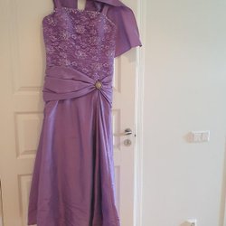 dev-external Lila aftonklänning med spetsliv och matchande sjal