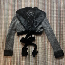 dev-external Queenly grå lyxig bolero jacka tröja storlek 34-38