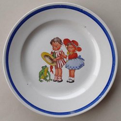 dev-external Fat - Gammal tallrik barn och groda - Upsala Ekeby / Gefle