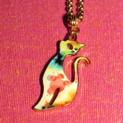 dev-external Halsband ca 49-50 cm med katt av emalj på kedja, allergivänligt.