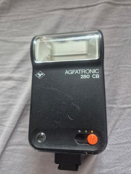 Blixten Agfatronic 280 CB är en extern blixtenhet designad för att ge extra belysning vid fotografering. Den har en robust konstruktion och är enkel att montera på kompatibla kameror. Blixten har en strömbrytare och indikatorlampor för att visa status.