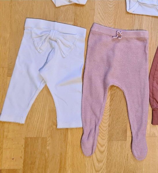 Ett par ljusrosa stickade byxor med fötter och en liten rosett i midjan, från Zara.