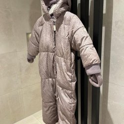 Söt overall från Newbie med ett fint blommönster. Den har en luva och muddar vid ärmarna och bensluten. Perfekt för kyligare dagar.