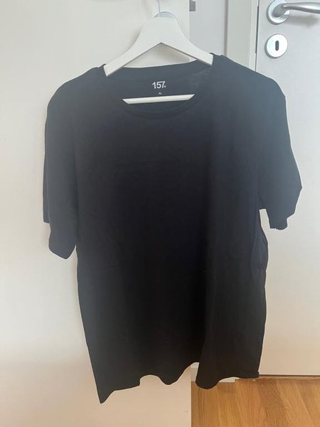 Svart t-shirt med rund hals och korta ärmar.