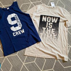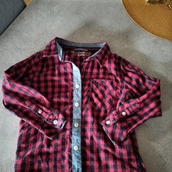 Denna annons inkluderar nio skjortor. En blåvit rutig långärmad skjorta, en rutig kortärmad skjorta i blått, orange och vitt, en blårutig kortärmad skjorta, en rutig kortärmad skjorta i marinblått och orange, en röd långärmad skjorta, en vinröd långärmad skjorta, en lila långärmad skjorta, en lila och vitrandig långärmad skjorta, en grå långärmad skjorta och en rosa långärmad skjorta.