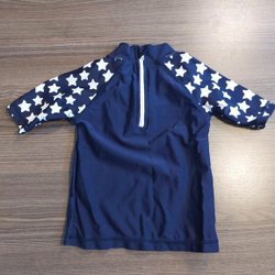 Lila stickad tröja med korta ärmar. Tröjan har en ribbstickad halsringning, ärmslut och nederkant.