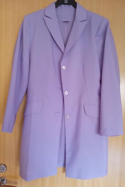 Ljuslila fodrad kavaj med tre knappar och fickor fram. Kavajen har en klassisk krage och är i en rak modell.