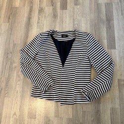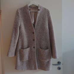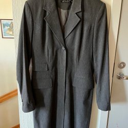 Kavajen har en enkel design med en knapp framtill och fickor på sidorna.