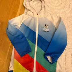 Grå fleecejacka med dragkedja framtill och fickor med dragkedja. Jackan har en hög krage och en sportig design.