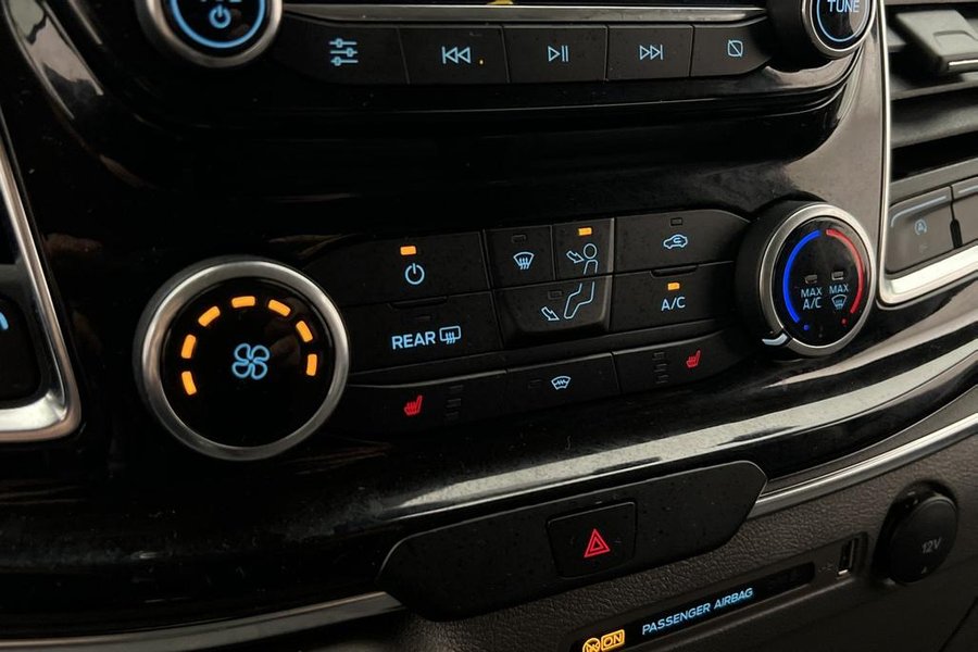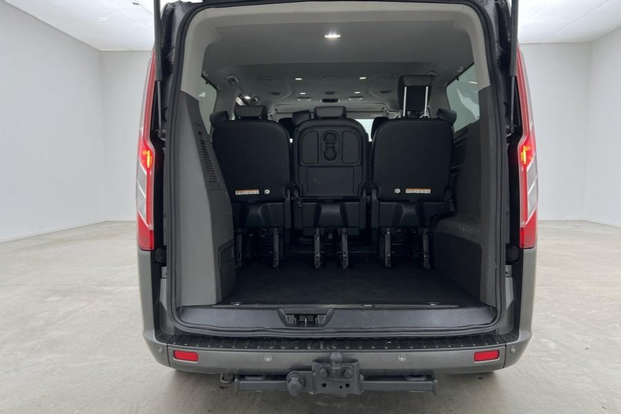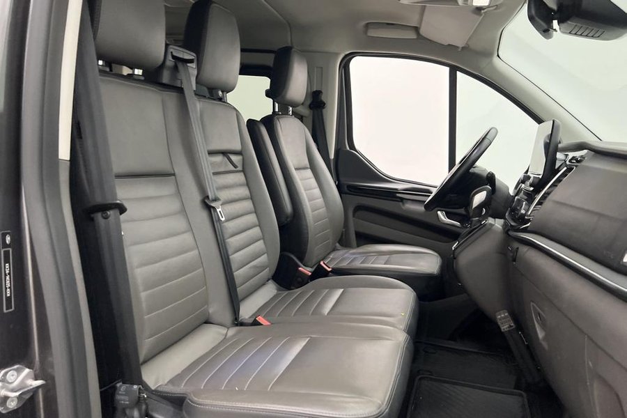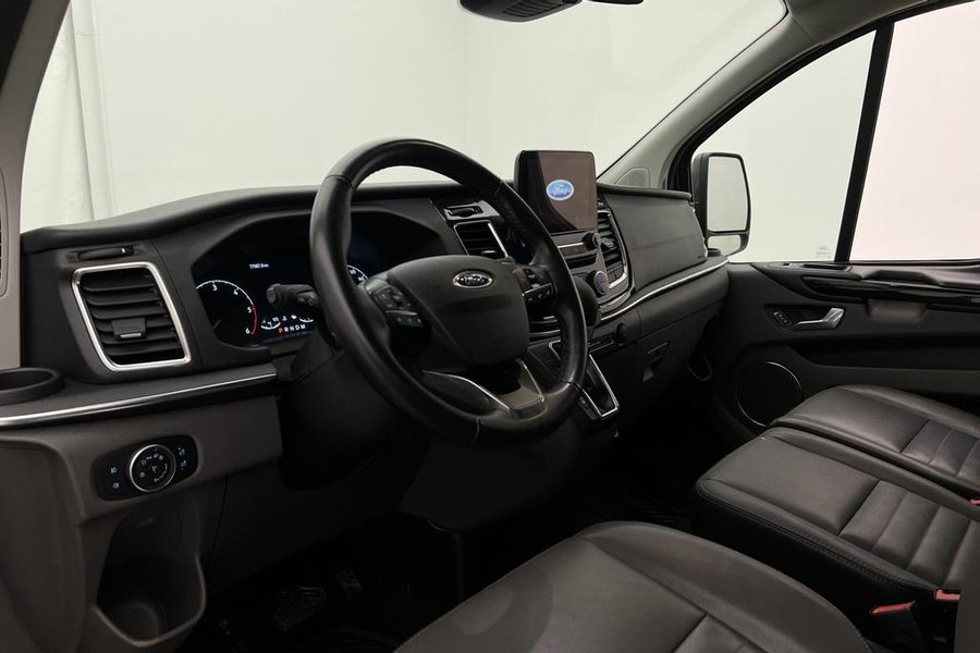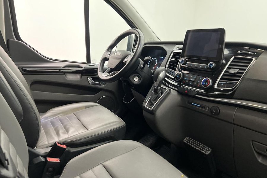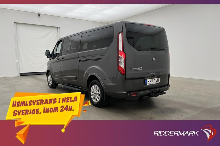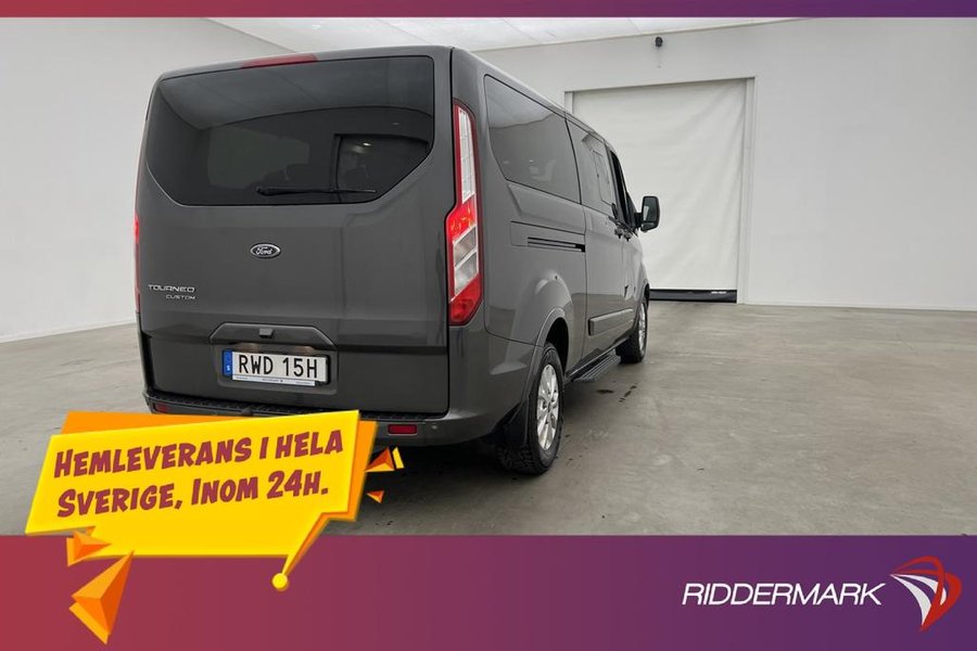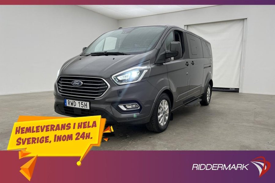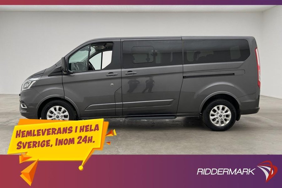 Titanium Paket,9-Sits,Fjärrstyrd Dieselvärmare,Elstol förare,Skinnklädsel,Dubbla skjutdörrar,Backkamera,Parkeringssensorer bak,Parkeringssensorer fram,Multifunktionsratt,Adaptiv farthållare,Farthållare,Lane Assist,AC/Luftkonditionering,Bluetooth,Eluppvärmd vindruta,Start/stopp-funktion,Sätesvärme fram,Touchskärm,SYNC-3,Tonade rutor,Svensksåld,Miljöklass Euro 6,ISOFIX,Minibuss,Custom Kombi,L2,Lång,Långa modellen,MOMS,Leasbar