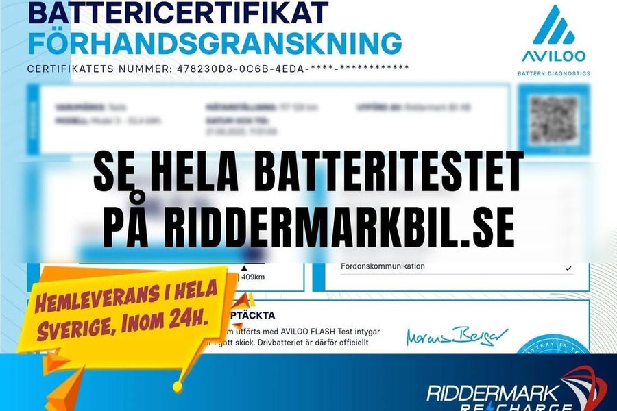 Se batteritest på vår hemsida,Leasbar MOMS,Svensksåld,Fyrhjulsdrift,Uppgraderade Autopilot,Dragkrok,Panoramaglastak,Backkamera,Navigation,Skinnklädsel,Elstolar fram,Sätesvärme fram,El justerbar ratt,Multifunktionsratt,Adaptiv farthållare,Lane assist,LED-strålkastare,Elektrisk bagagelucka,Elhissar fram och bak,Fjärrstyrt centrallås,ISOFIX