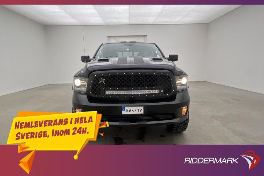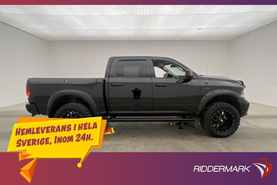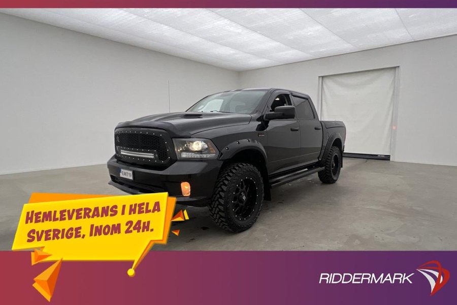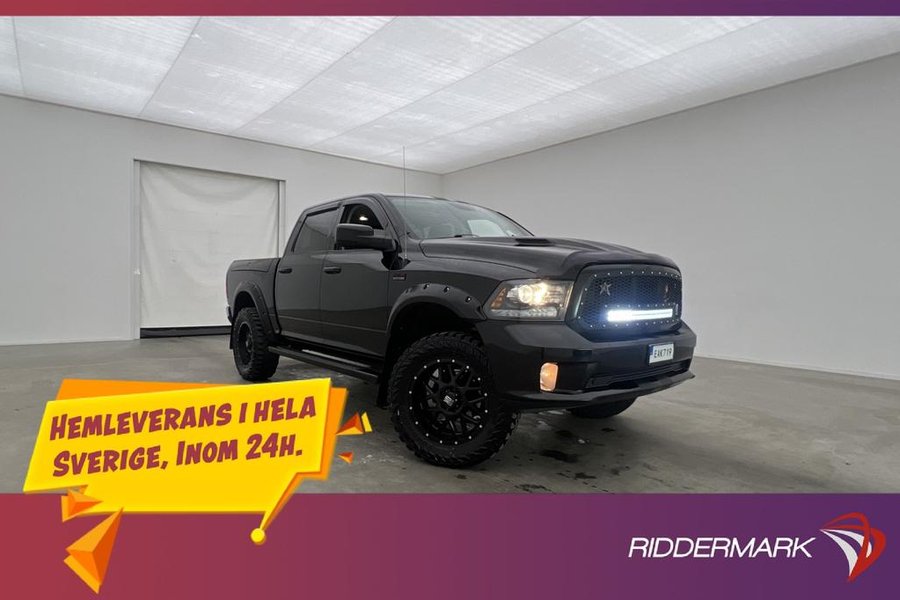 Sport,Elektrisk Motor/Kupe Värmare,Dragkrok,Luftfjädring,Rambox,Taklucka,Alpine Ljudsystem,Skinnklädsel,Backkamera,Parkeringssensorer fram,Parkeringssensorer bak,5-Sits,2 Zons Klimatanläggning,Multifunktionsratt,Farthållare,Touchskärm,Elinfällbara sidospeglar,Sätesvärme fram,Ventilerade säten,Rattvärme,Hög/Låg Växel,DH,Dubbelhytt,Pickis ,Pickup,4x4,4WD,AWD,Fyrhjulsdrift,RAM,RAM1500,RAM 1500