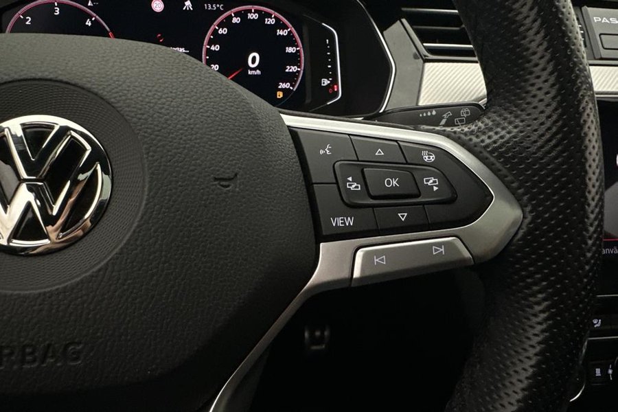 R-Line,GTS,Cockpit,Skinnklädsel,Panoramaglastak,Fjärrstyrd Dieselvärmare,Dragkrok - Infällbar,Dynaudio Ljudsystem,Backkamera,Navigation,Adaptiv farthållare,Svart innertak,Apple CarPlay,4Motion,Fyrhjulsdrift,Elhissar fram & bak,Parkeringssensorer fram & bak,Elinfällbara sidospeglar,Helskinn,Avstängningsbar airbag,Parkeringsvärmare,Elektrisk bagagelucka,ISOFIX,Android Auto,Bluetooth,Active Info Display,Multifunktionsratt,Elektrisk parkeringsbroms,Keyless,Rattvärme,Skyltigenkänning,Sätesvärme fram