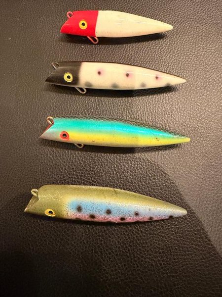 Set med fyra fiskedrag i varierande färger och mönster. Passar för fiske i olika vatten och kan användas för att locka olika typer av fisk. Dragens design kan bidra till att öka chansen för fångst.