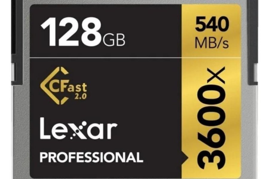 Lexar Professional CFast 2.0 minneskort med 128GB lagringskapacitet och 540 MB/s läshastighet. 3600x.