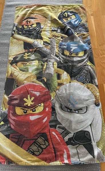 Färgglad handduk med motiv av Lego Ninjago. Perfekt för barn som älskar Lego.