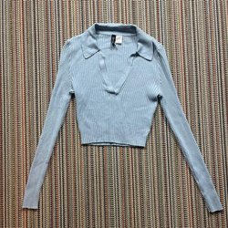 Snygg gråmelerad cropped tröja med hög krage och långa ärmar. Tröjan har en figursydd passform och är perfekt för både vardag och fest. Enkel och stilren design som passar till många olika outfits.