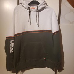 Grå sweatshirt från Morris Lady med en röd och vit ribbad krage. Tröjan har texten ”MORRIS” tryckt på framsidan i vita bokstäver.Kan hämtas i Göteborg.Jag samfraktar gärna .