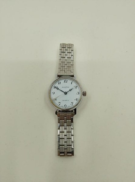 Bilden visar ett elegant och klassiskt damarmbandsur med en silverfärgad metallänk. Klockan har en tidlös design som passar både till vardags och finare tillfällen.