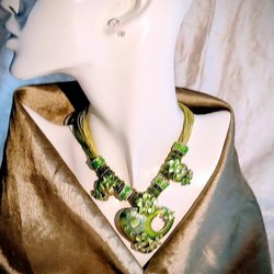 Färgglad keramik vas med dekorativa handtag.