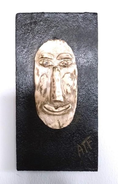 Stor Relief i handgjord keramik, 8 x 16 cm. Monterad på en svartmålad träfiberplatta, 15 x 29 cm. Design ATF. Tavelkrok på baksidan.