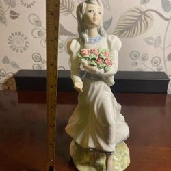 En vacker porslinsfigur från Tengra Spanien, föreställande en ung dam med rosor. Perfekt för samlare av porslinsfigurer. Utan skada eller nagg .
