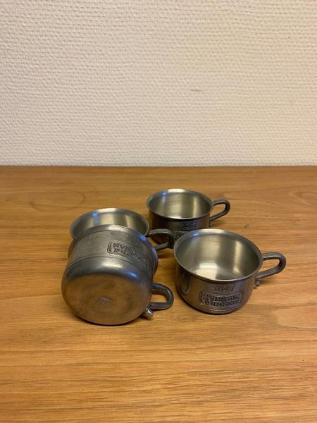Set med Svensk Punsch tenn muggar. Märkta med Scandia Tenn.