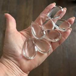 7 st större glasdroppar. Med hål för upphängning.