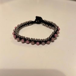 Armband I silverfärgad metall och transparenta pärlor. Längd 17+5 cm. I fraktavgiften ingår emballage