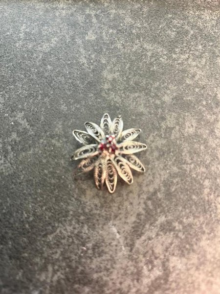 Fin lille broche med 3 røde sten.
