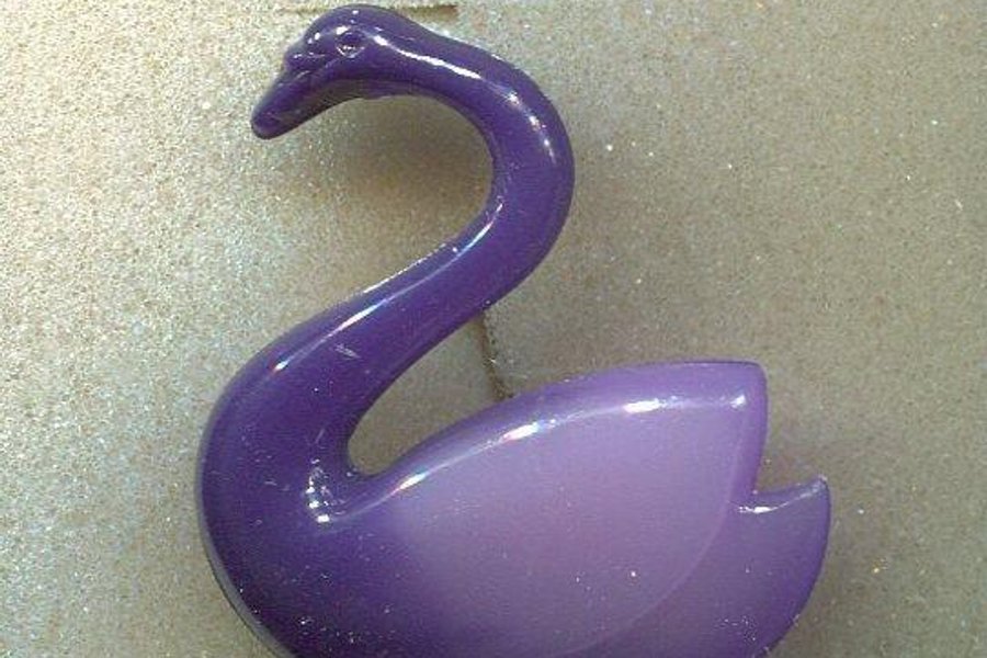dev-external brosch Svan i plast lila