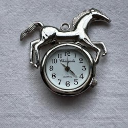 Söt hängsmycke klocka med ett hästmotiv. Klockan är märkt Chacyada och har ett quartz urverk. Boetten är tillverkad av rostfritt stål och är vattenresistent. Perfekt för hästälskaren!