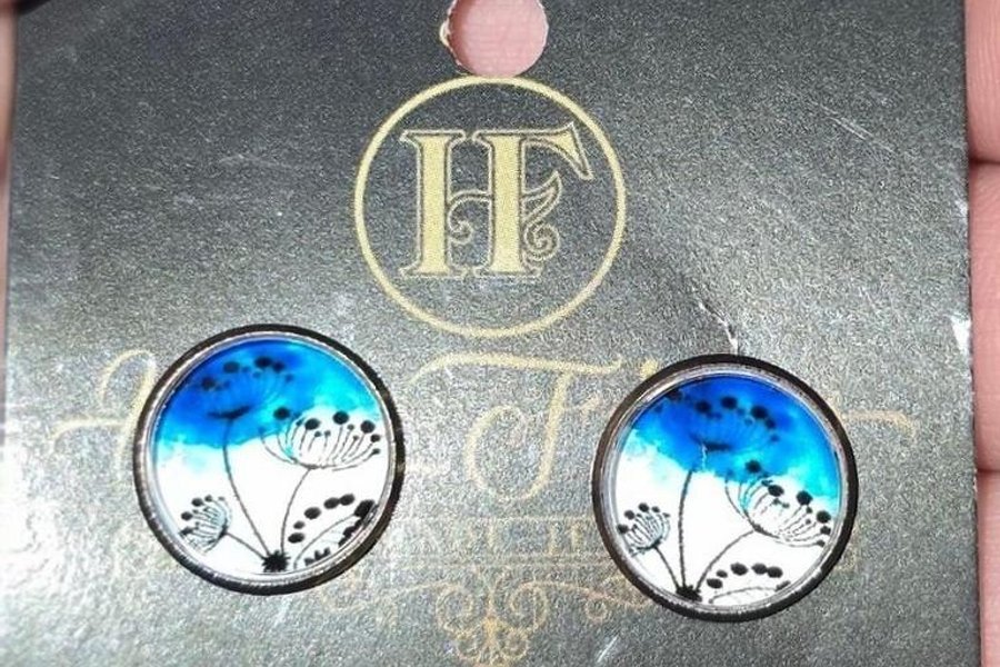 Ett par örhängen med ett unikt blommönster. Perfekt för att komplettera din stil.