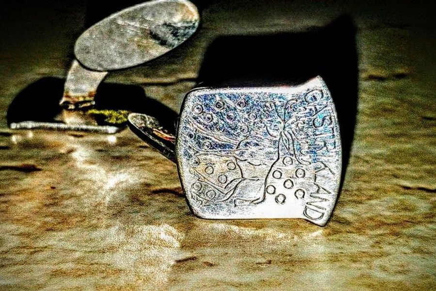 Manschettknapp i silver med motiv föreställande Gästriklands landskapsvapen.