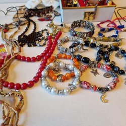 Fina bijouterie som är fortfarandei bra användbart skick. Smyckeskrin och övriga dekorationer ingår inte i auktionen.