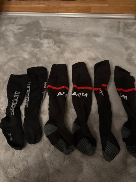 Här är tre set med fotbollsstrumpor. Det finns strumpor från Stadium och AC Milan (ACM).