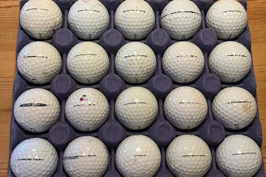Ett sortiment av golfbollar inklusive Pro V1, AVX, Chrome Soft, Super Soft och Refinished. Kan förekomma skrap och mindre märken! D-klass