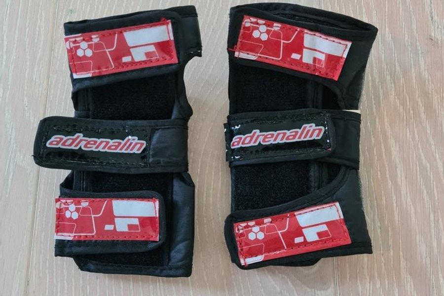 Ett par vristskydd från Adrenalin i storlek S. Perfekt för aktiviteter som skateboard eller inlines. Från rökfritt hem, katt finns i hemmet.