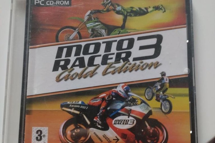 Moto Racer 3 Gold Edition för PC CD-ROM. Spelet har en åldersgräns på 3+ enligt PEGI.