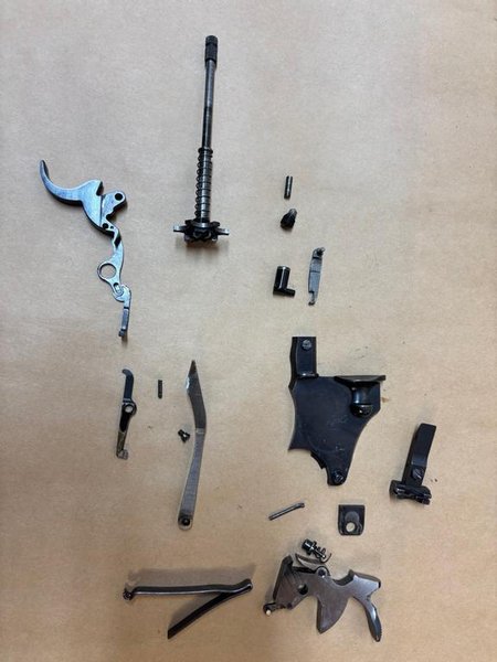 De licensfria delarna från en skrotad revolver Colt 357 i kaliber .357. Kan även passa Colt Trooper mfl. Jag kan ta mått på specifika delar om det finns behov.