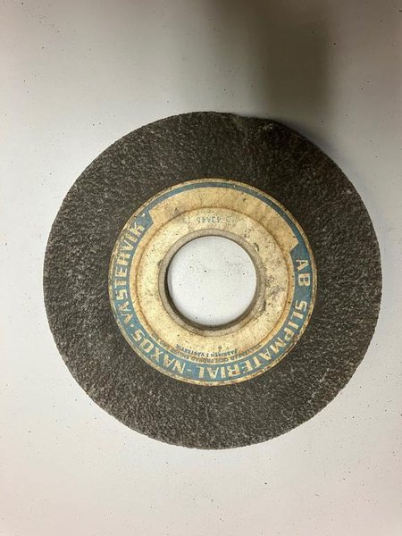 Slipskiva från tillverkaren AB Slipmaterial Naxos Västervik. Märkning på etiketten inkluderar '43A45'.