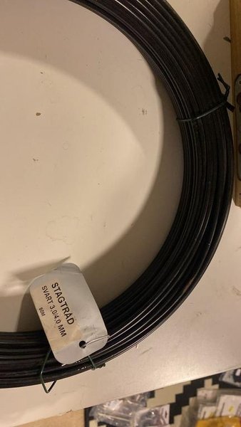 Stagtråd i svart färg. Tråden har en dimension på 3,0/4,0 mm och en längd på 50 meter.