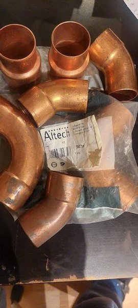 Kopparrördelar från Altech. Rak 42x50mm, 2st. 45gr 38x42mm 3st. 90gr 38x42mm 2st