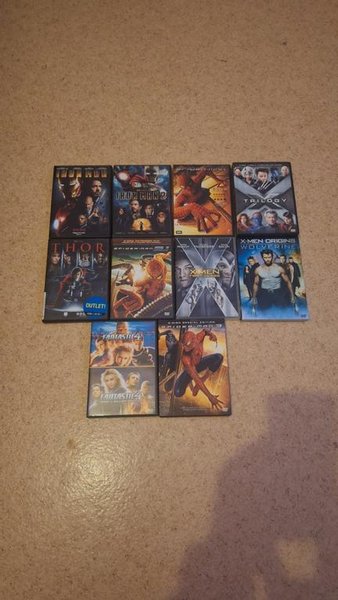 Ett paket med 12 DVD-filmer. Innehåller Iron Man, Iron Man 2, Thor, Spider-Man, Spider-Man 2, Spider-Man 3, X-Men Trilogy, X-Men First Class, X-Men Origins Wolverine, Fantastic Four och Fantastic Four: Rise of the Silver Surfer.