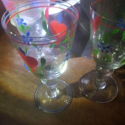 Glasen är dekorerade med hjärtan och blommor.