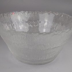 Iittala hög skål på fot från Iittala. Skålen är tillverkad i klarglas och har en räfflad struktur samt en vågig kant upptill. Den är etikettmärkt samt under står det Marimekko.
