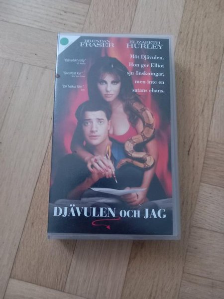 VHS-utgåva av filmen "Djävulen och Jag" med Brendan Fraser och Elizabeth Hurley. Filmen handlar om Elliot som möter Djävulen och får sju önskningar.