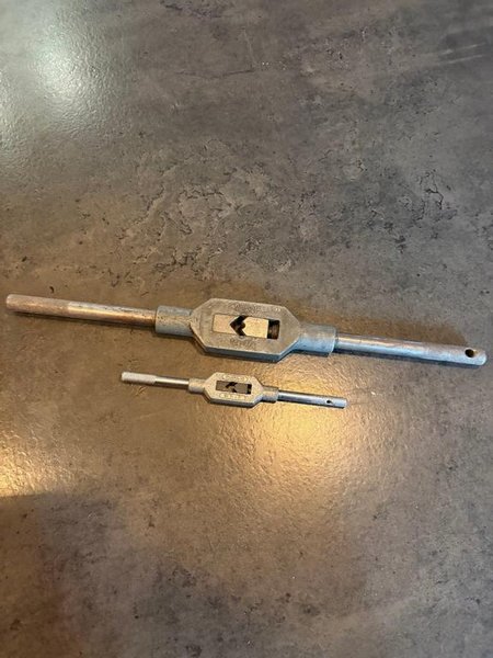 Två gängtappshållare i olika storlekar. Verktygen är avsedda för att hålla gängtappar vid gängning.