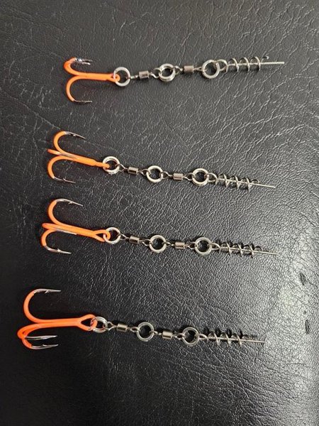 4 stingers som bl.a passar de jiggar på 16-17 cm jag säljer i andra annonser. Dessa stingers är med en trekrok. Alla fyra stingers har olika storlek på kroken. Här får du en av varje, se bild. En 2/0, en 1/0, en #1 och en #2. Se gärna mina andra annonser. Samfraktar gärna. Obs detta är fyra stingers ej någon jigg.