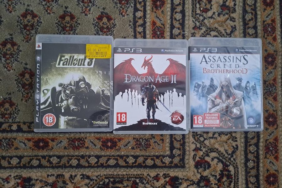Tre spel till Playstation 3: Fallout 3, Dragon Age II och Assassin's Creed Brotherhood.